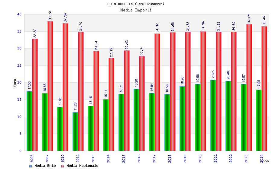 | Anno | Firme | Importi | Media | Naz. | Reg. | Prov. | Comu. |