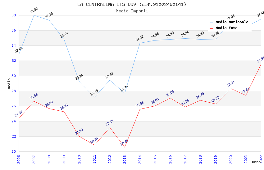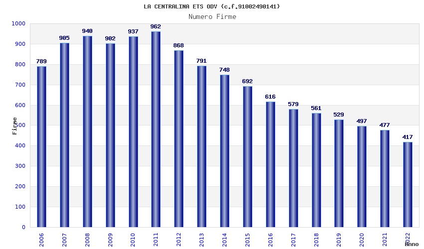 | Anno | Firme | Importi | Media | Naz. | Reg. | Prov. | Comu. |
