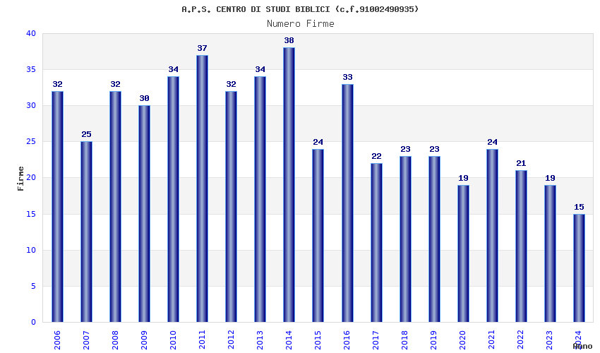 | Anno | Firme | Importi | Media | Naz. | Reg. | Prov. | Comu. |
