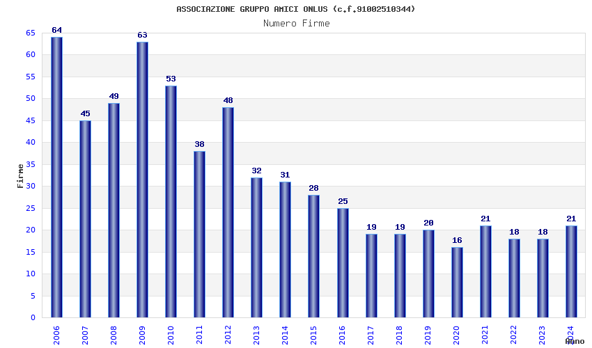 | Anno | Firme | Importi | Media | Naz. | Reg. | Prov. | Comu. |