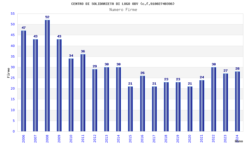 | Anno | Firme | Importi | Media | Naz. | Reg. | Prov. | Comu. |