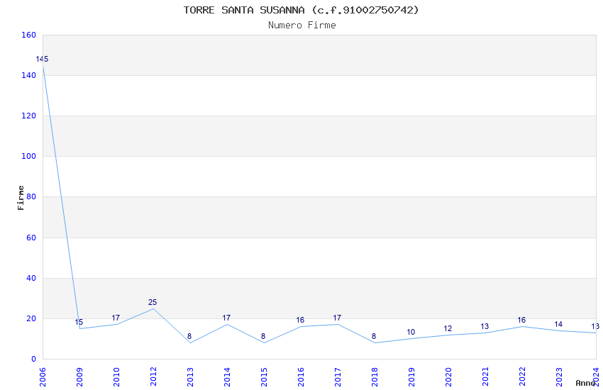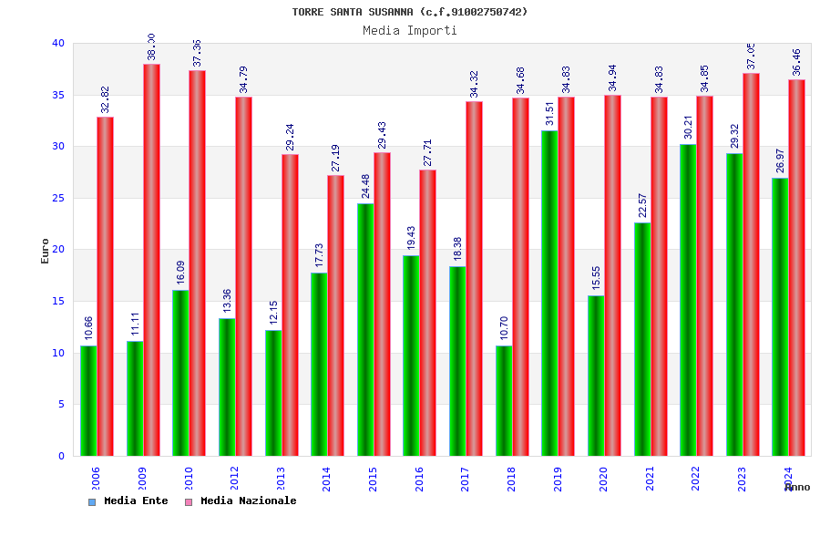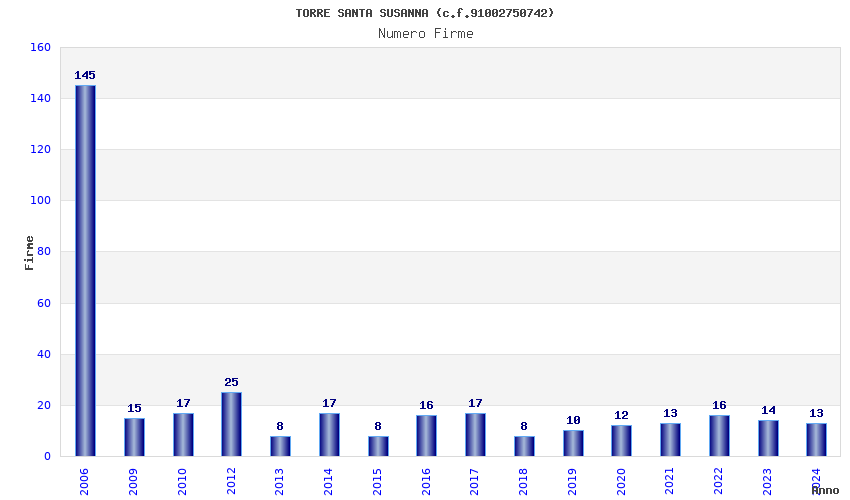 | Anno | Firme | Importi | Media | Naz. | Reg. | Prov. | Comu. |