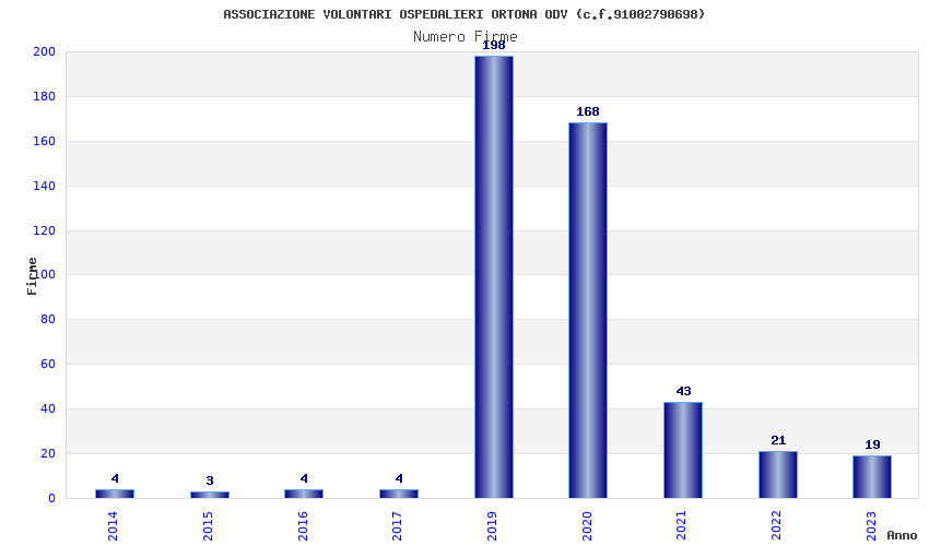 | Anno | Firme | Importi | Media | Naz. | Reg. | Prov. | Comu. |