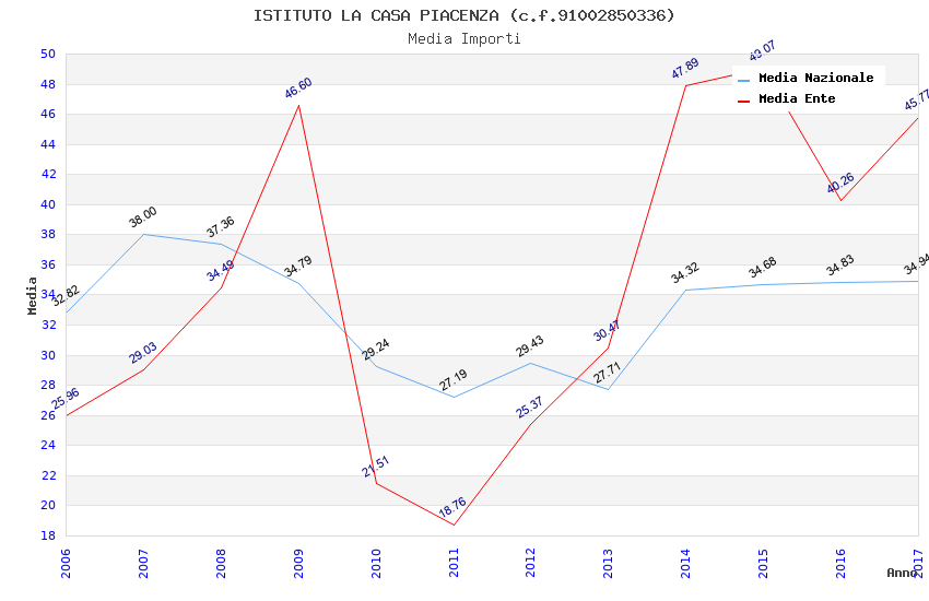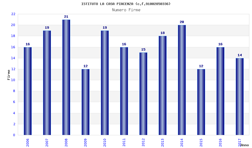| Anno | Firme | Importi | Media | Naz. | Reg. | Prov. | Comu. |