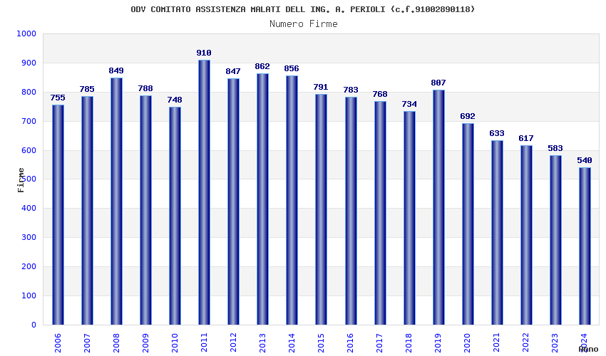 | Anno | Firme | Importi | Media | Naz. | Reg. | Prov. | Comu. |