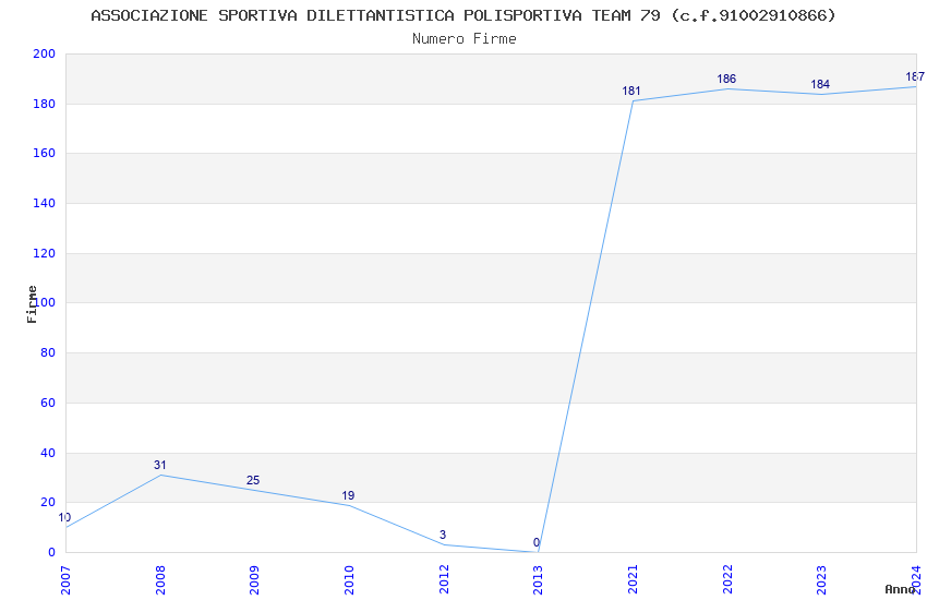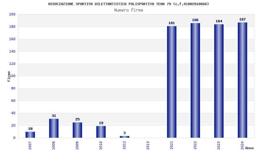 | Anno | Firme | Importi | Media | Naz. | Reg. | Prov. | Comu. |