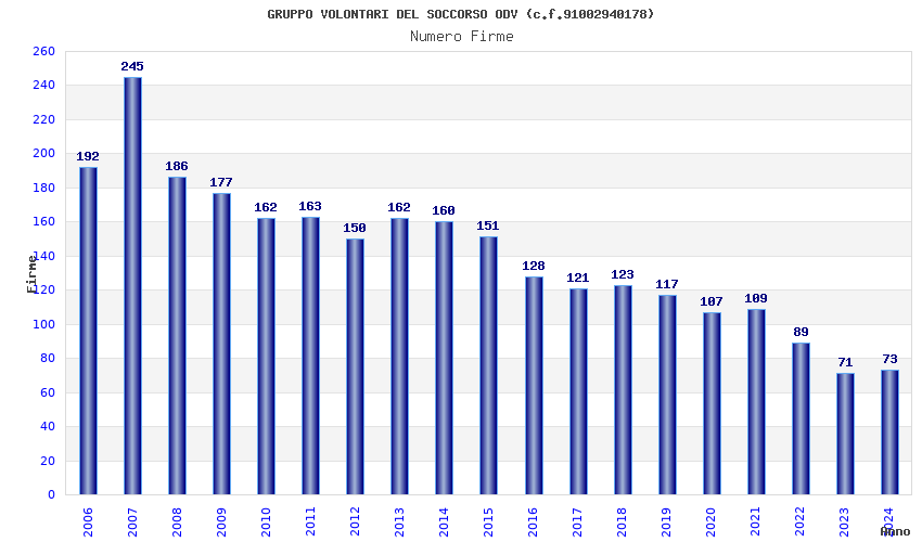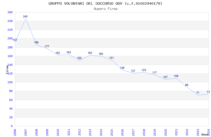 | 2024 | 73 | 2.607,00 | 35,71 | 19.562 | 4.206 | 540 | 2 |