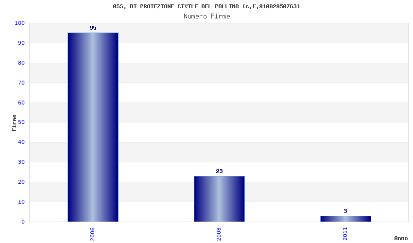 | Anno | Firme | Importi | Media | Naz. | Reg. | Prov. | Comu. |