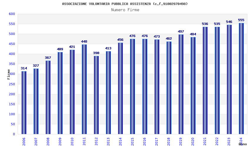 | 2006 | 314 | 8.205,71 | 26,13 | 5.268 | 345 | 26 | 1 |