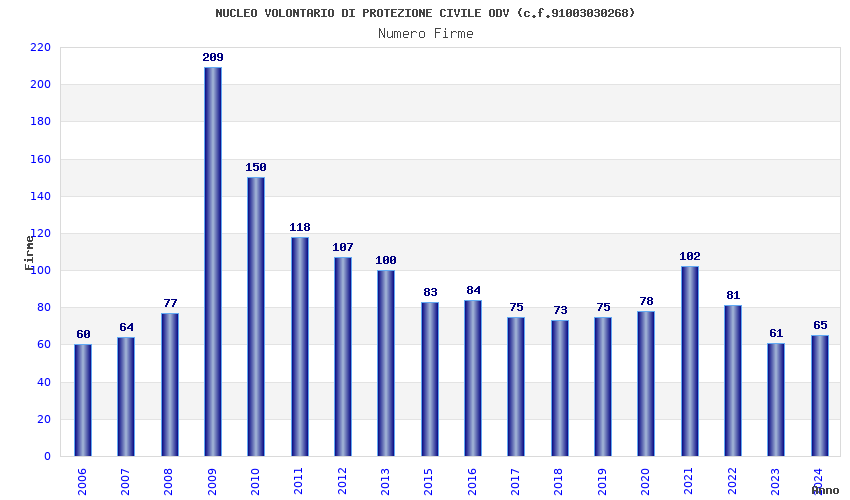 | Anno | Firme | Importi | Media | Naz. | Reg. | Prov. | Comu. |