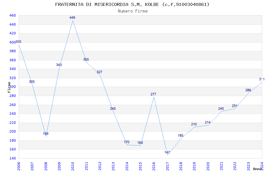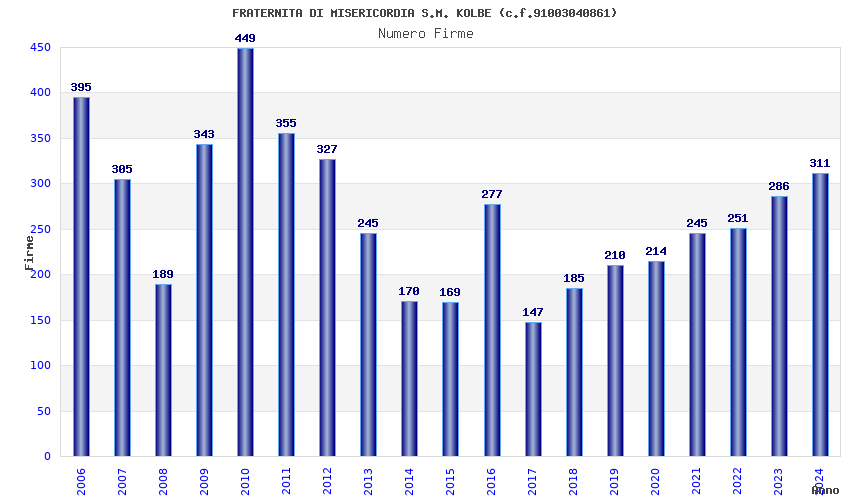 | Anno | Firme | Importi | Media | Naz. | Reg. | Prov. | Comu. |