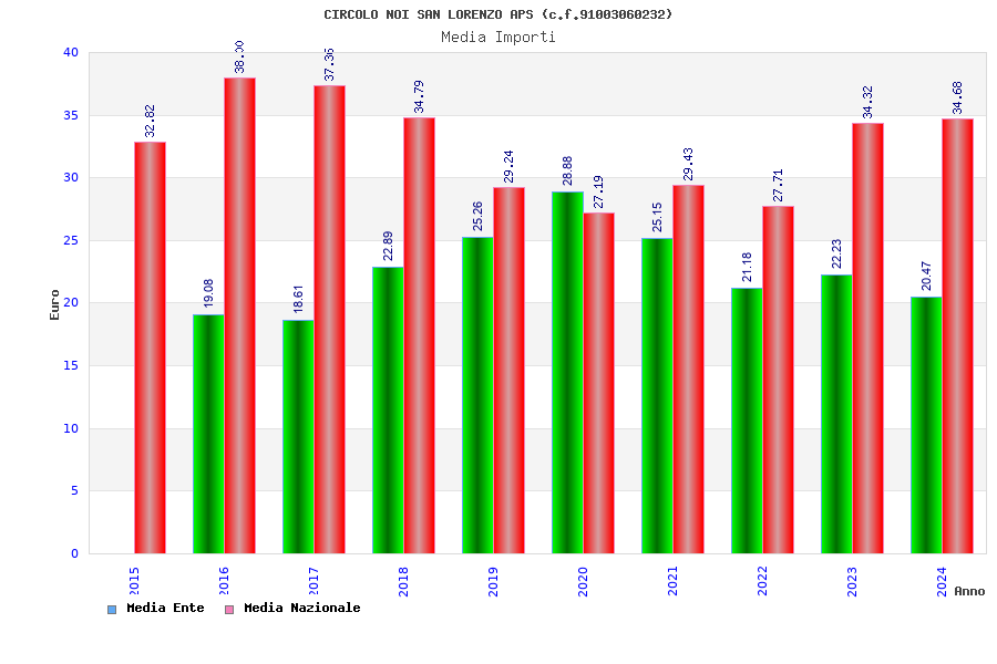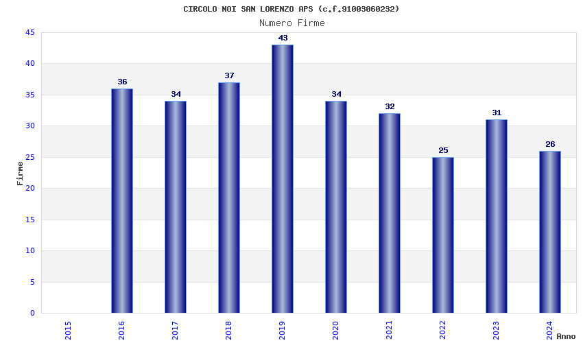 | Anno | Firme | Importi | Media | Naz. | Reg. | Prov. | Comu. |
