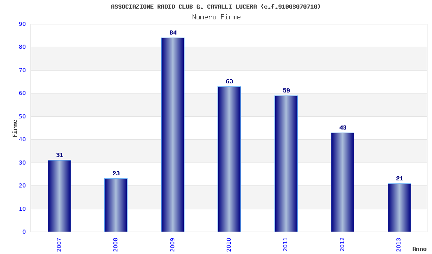 Anno Firme Importi Media Naz. Reg. Prov. Comu.