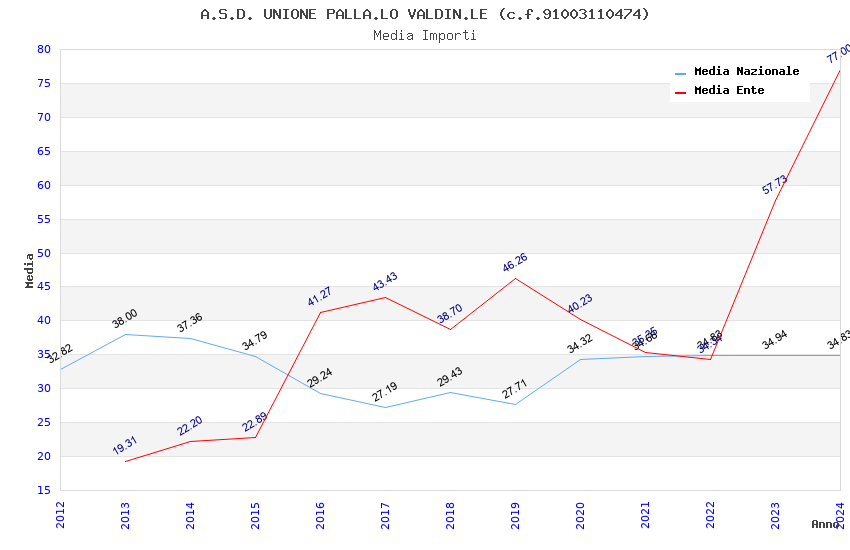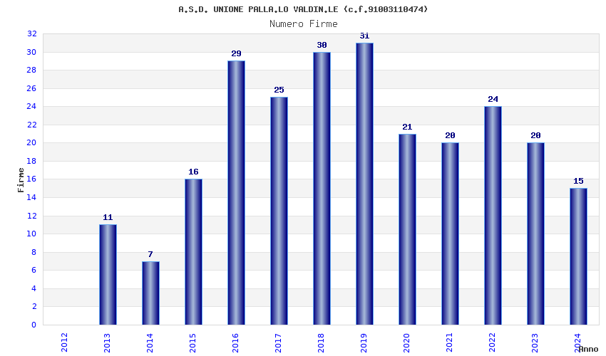 | Anno | Firme | Importi | Media | Naz. | Reg. | Prov. | Comu. |