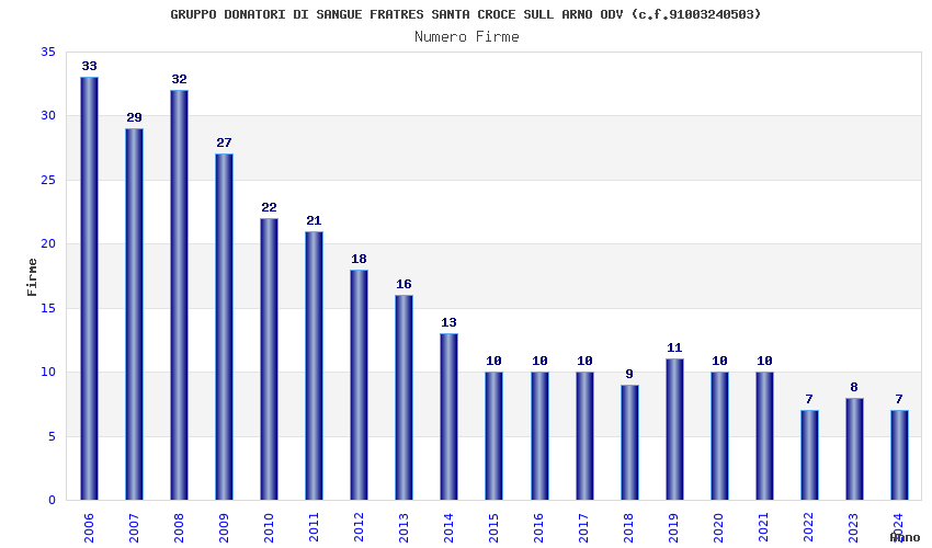 | Anno | Firme | Importi | Media | Naz. | Reg. | Prov. | Comu. |