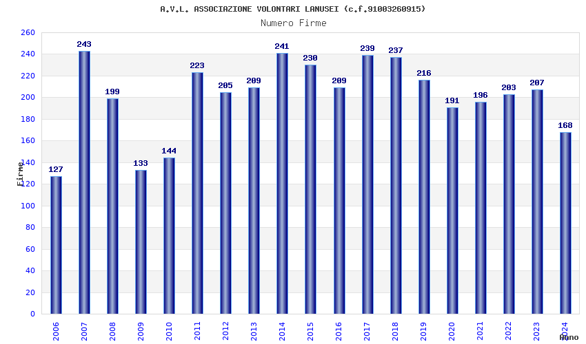 | 2017 | 239 | 4.453,47 | 18,63 | 12.414 | 207 | 23 | 2 |