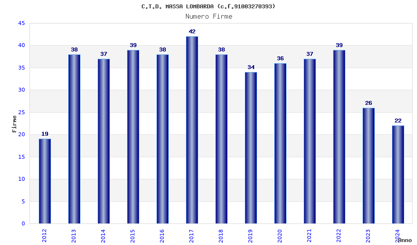 | 2022 | 39 | 1.639,46 | 42,04 | 26.234 | 2.287 | 185 | 2 |