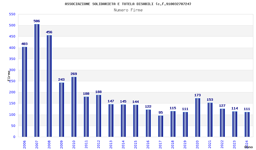 | Anno | Firme | Importi | Media | Naz. | Reg. | Prov. | Comu. |