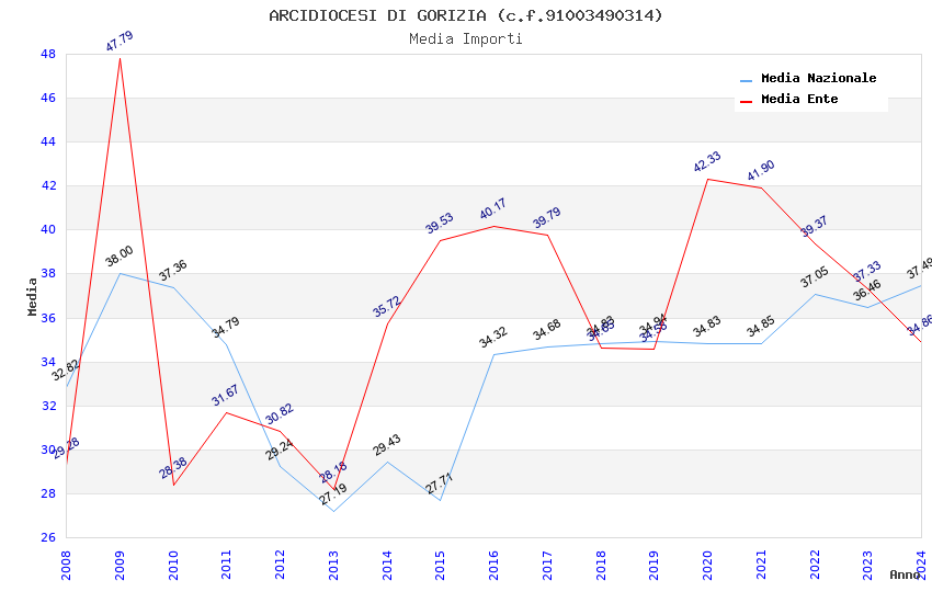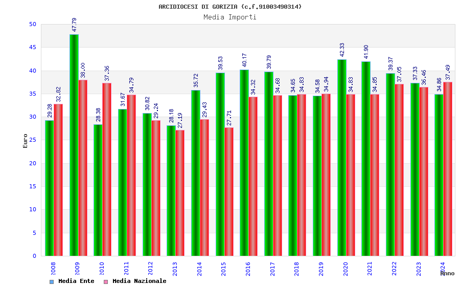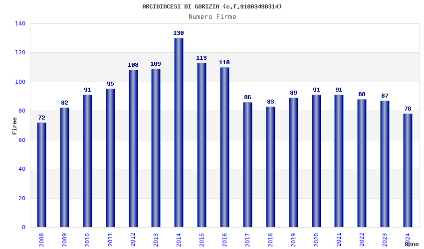 | Anno | Firme | Importi | Media | Naz. | Reg. | Prov. | Comu. |