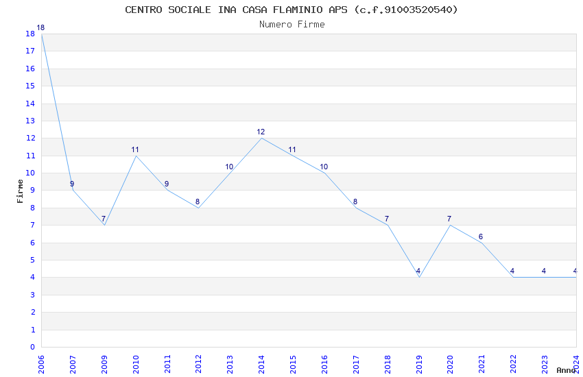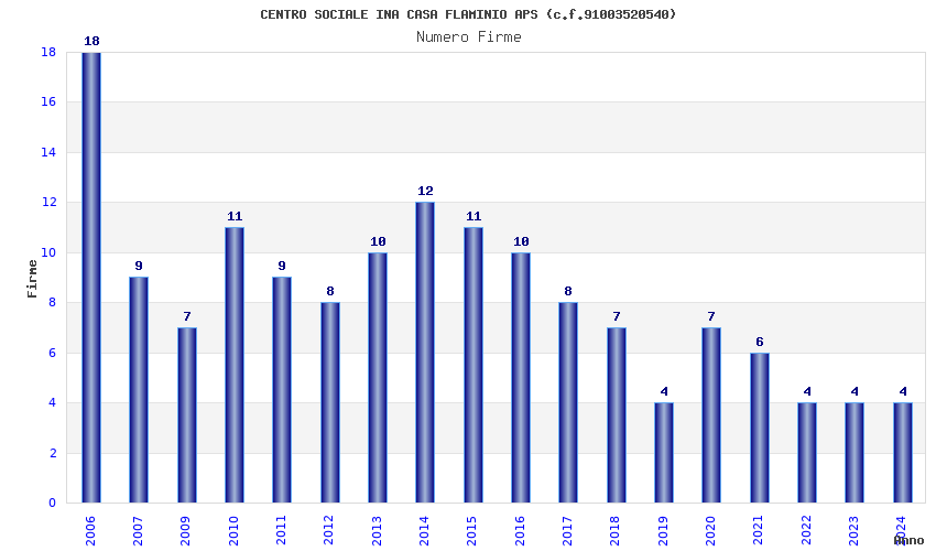 | Anno | Firme | Importi | Media | Naz. | Reg. | Prov. | Comu. |