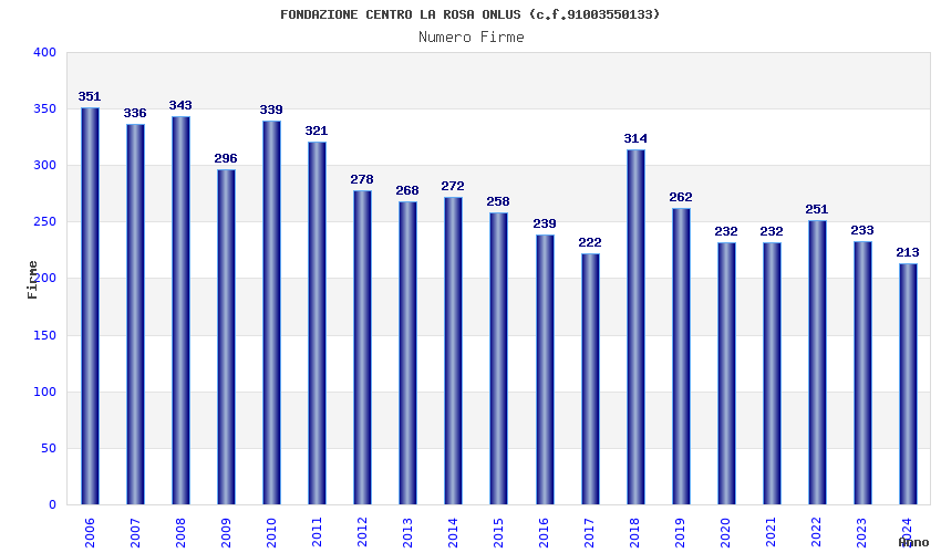 | Anno | Firme | Importi | Media | Naz. | Reg. | Prov. | Comu. |