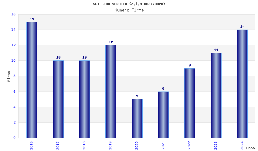 | 2016 | 15 | 584,84 | 38,99 | 39.698 | 3.549 | 145 | 11 |