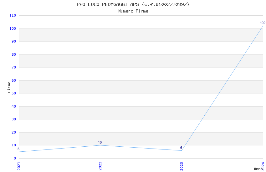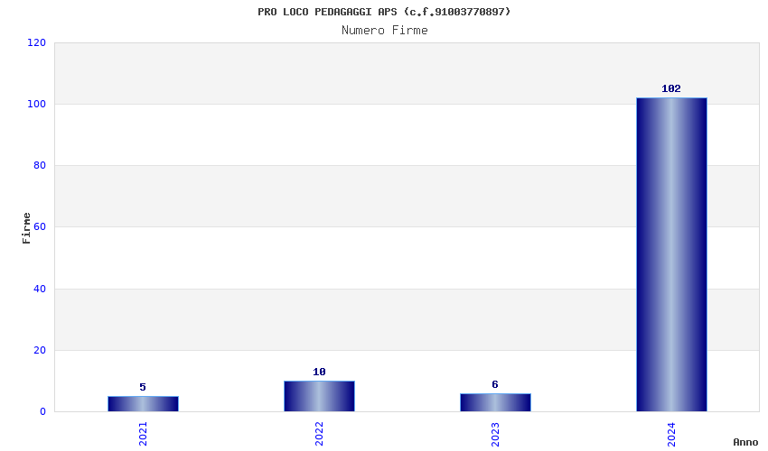 | Anno | Firme | Importi | Media | Naz. | Reg. | Prov. | Comu. |