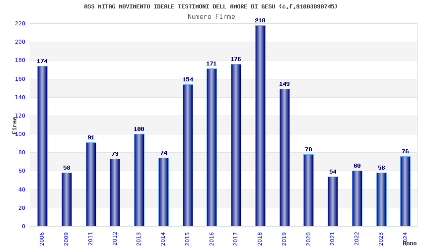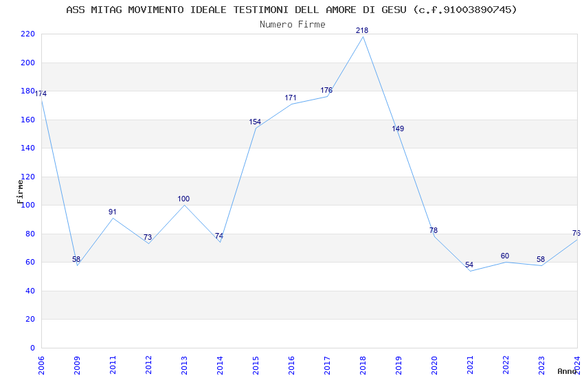 | 2024 | 76 | 3.174,02 | 41,76 | 16.550 | 877 | 78 | 25 |