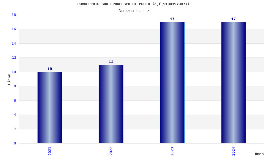 | Anno | Firme | Importi | Media | Naz. | Reg. | Prov. | Comu. |