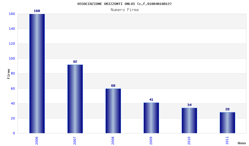 | Anno | Firme | Importi | Media | Naz. | Reg. | Prov. | Comu. |