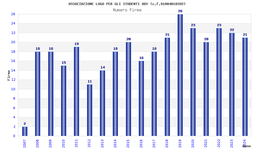 | Anno | Firme | Importi | Media | Naz. | Reg. | Prov. | Comu. |