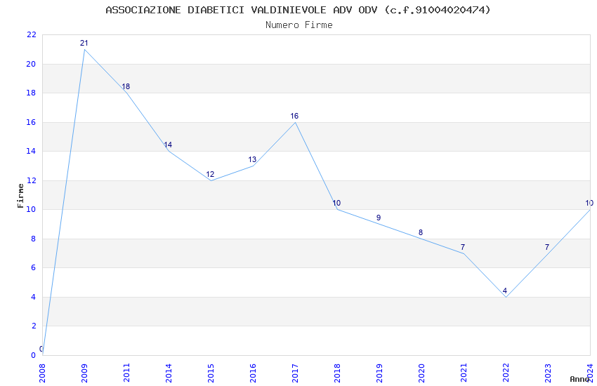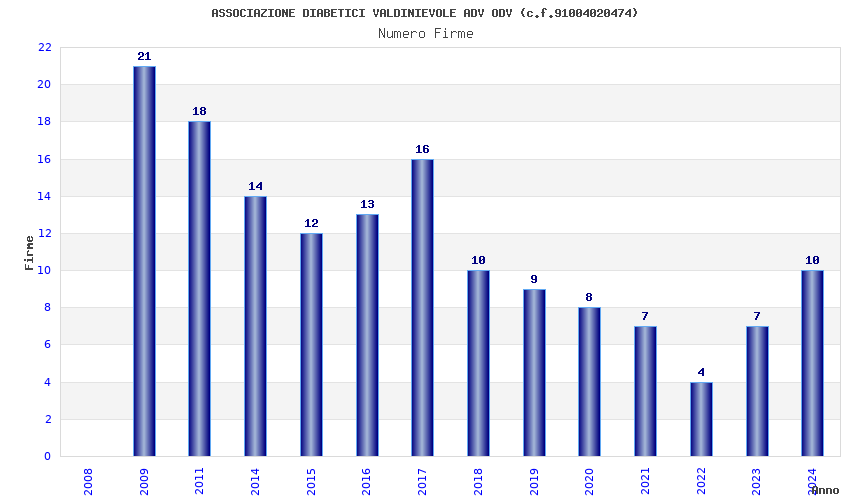 | Anno | Firme | Importi | Media | Naz. | Reg. | Prov. | Comu. |