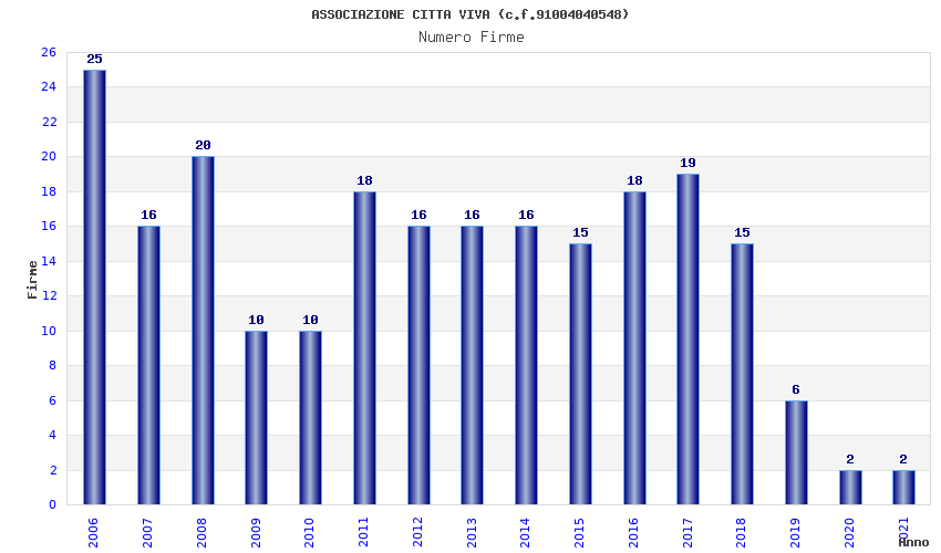 | Anno | Firme | Importi | Media | Naz. | Reg. | Prov. | Comu. |