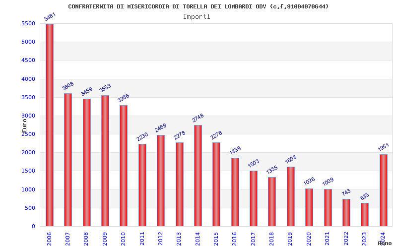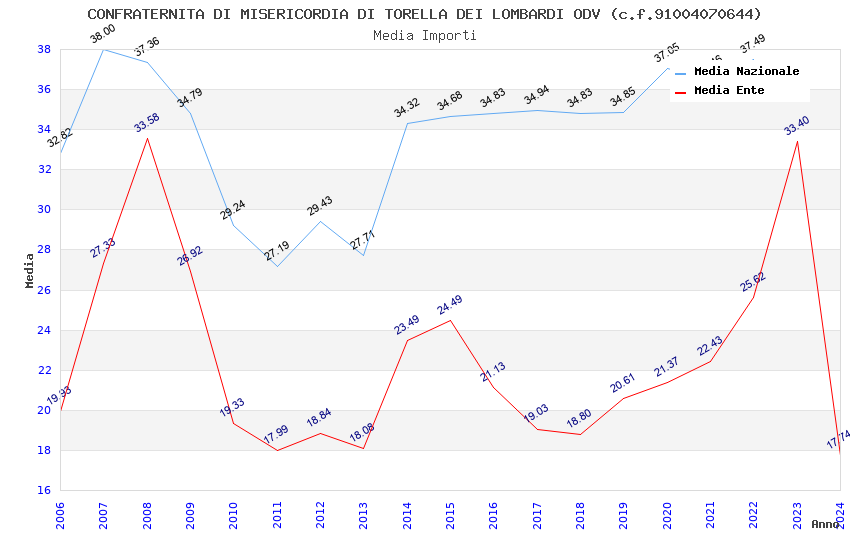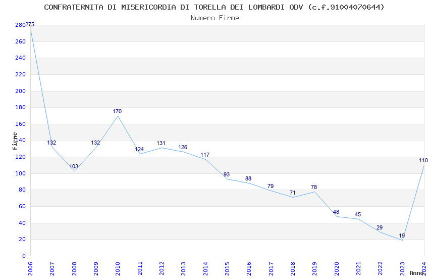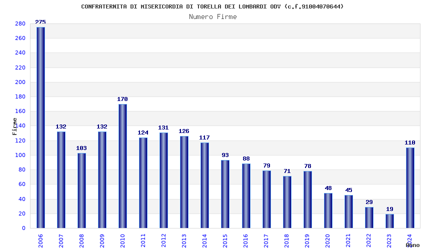 | Anno | Firme | Importi | Media | Naz. | Reg. | Prov. | Comu. |