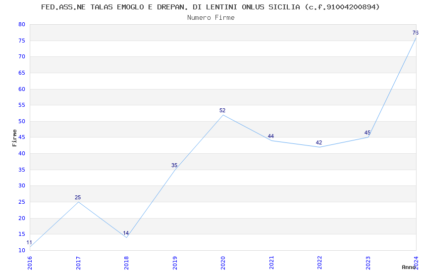 | 2024 | 76 | 2.150,46 | 28,30 | 22.792 | 1.430 | 106 | 5 |