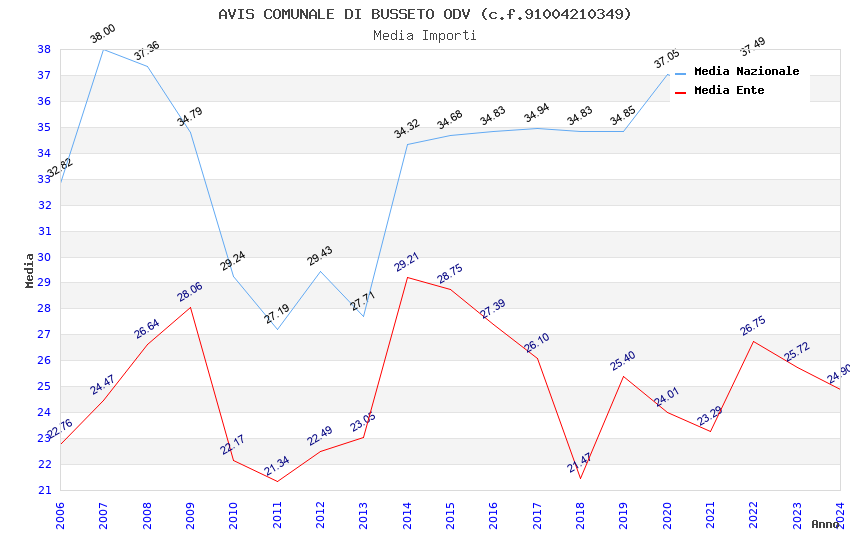 | Anno | Firme | Importi | Media | Naz. | Reg. | Prov. | Comu. |