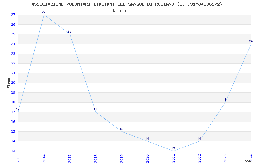 | 2017 | 25 | 625,87 | 25,03 | 41.135 | 8.692 | 1.148 | 2 |