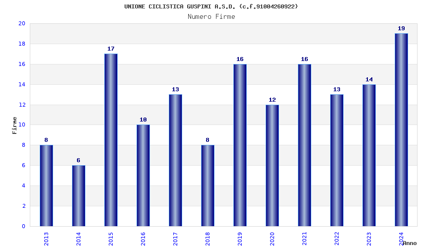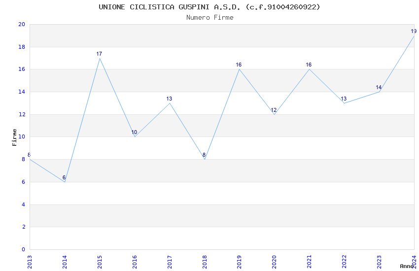 | 2019 | 16 | 367,82 | 22,99 | 49.521 | 1.280 | 272 | 8 |