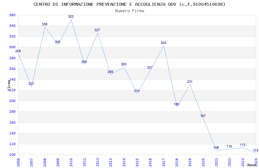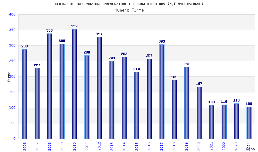 | Anno | Firme | Importi | Media | Naz. | Reg. | Prov. | Comu. |