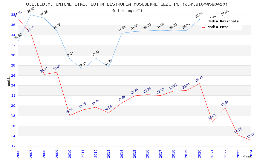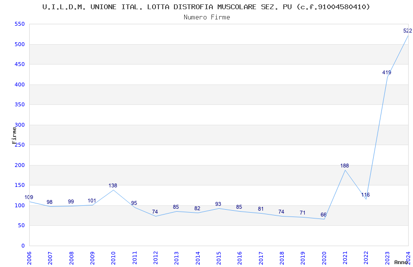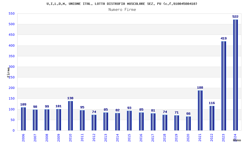 | Anno | Firme | Importi | Media | Naz. | Reg. | Prov. | Comu. |