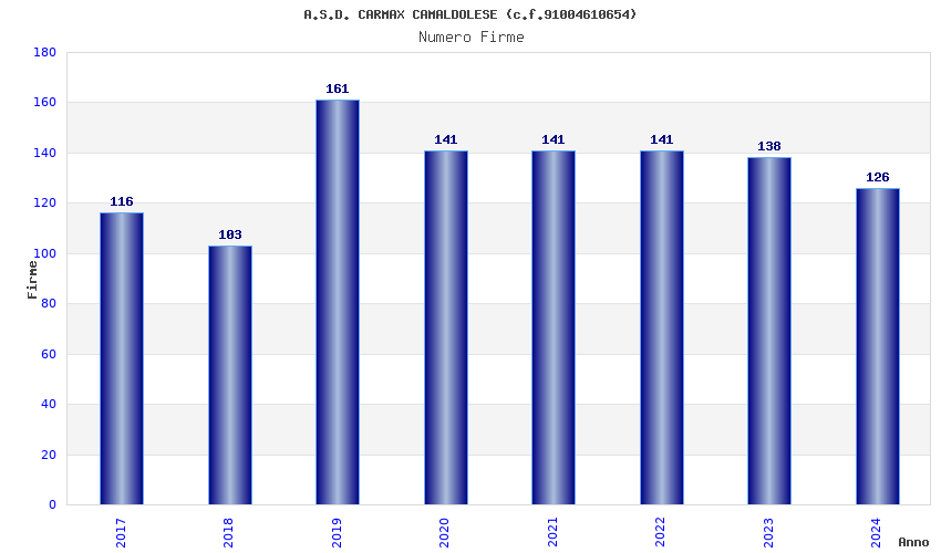 | Anno | Firme | Importi | Media | Naz. | Reg. | Prov. | Comu. |
