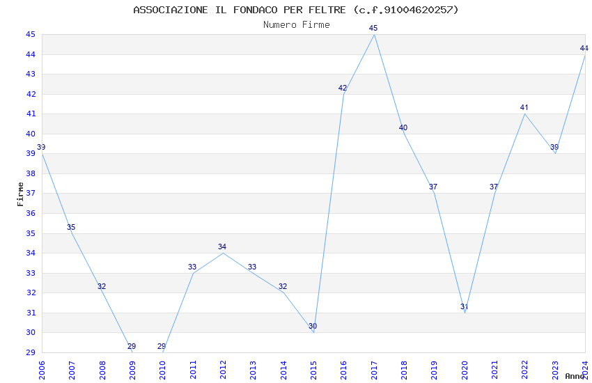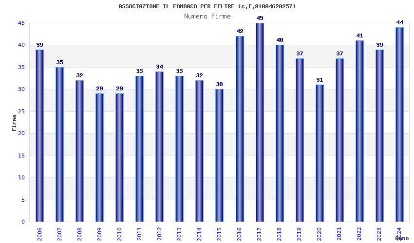 | 2017 | 45 | 1.509,69 | 33,55 | 27.868 | 2.615 | 145 | 16 |