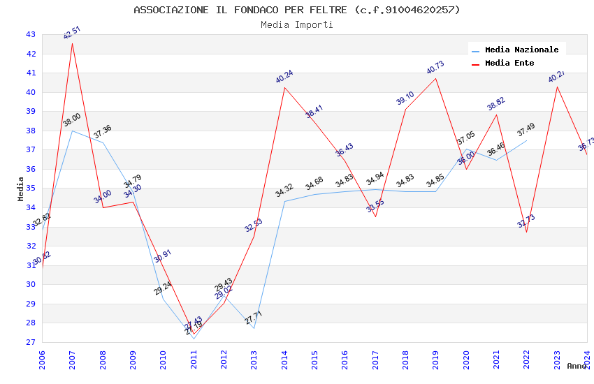 | Anno | Firme | Importi | Media | Naz. | Reg. | Prov. | Comu. |