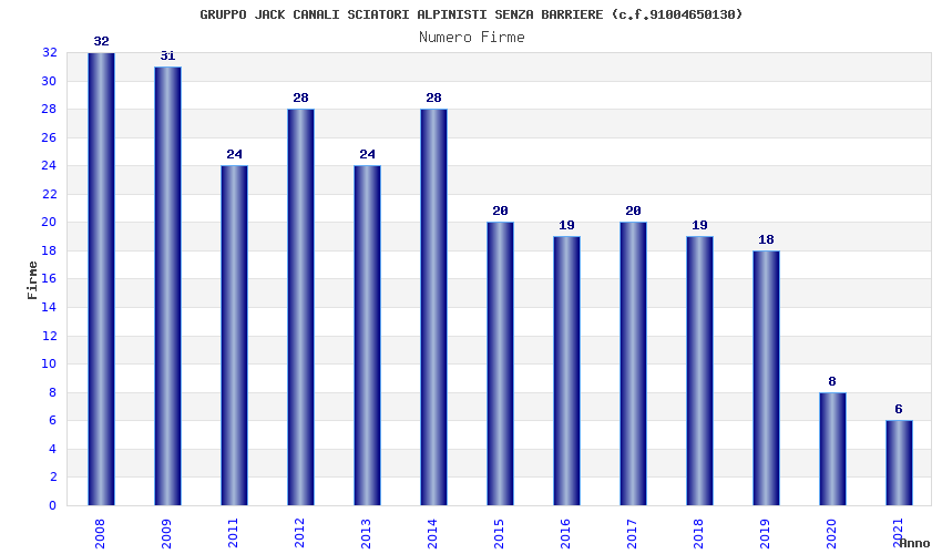 | Anno | Firme | Importi | Media | Naz. | Reg. | Prov. | Comu. |