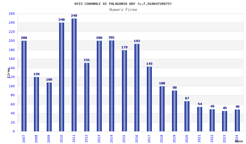 | Anno | Firme | Importi | Media | Naz. | Reg. | Prov. | Comu. |