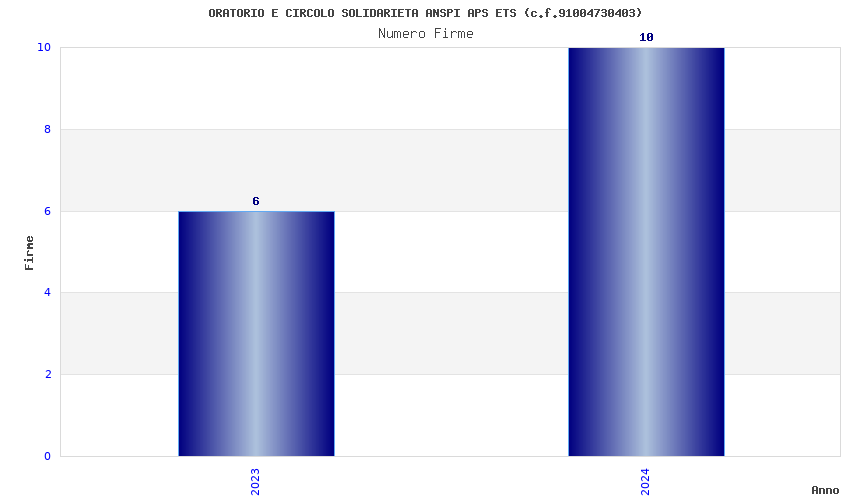 | Anno | Firme | Importi | Media | Naz. | Reg. | Prov. | Comu. |