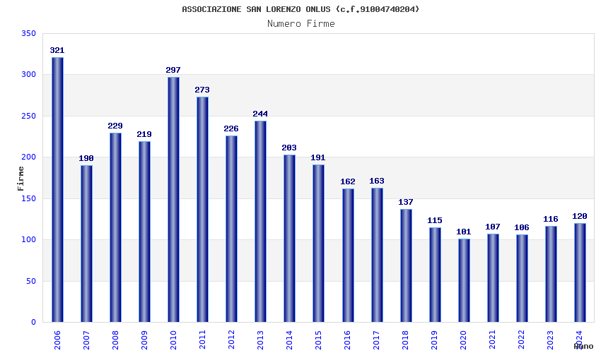 | 2006 | 321 | 8.447,45 | 26,32 | 5.110 | 1.356 | 34 | 3 |