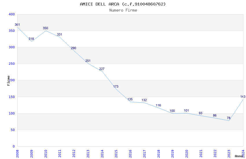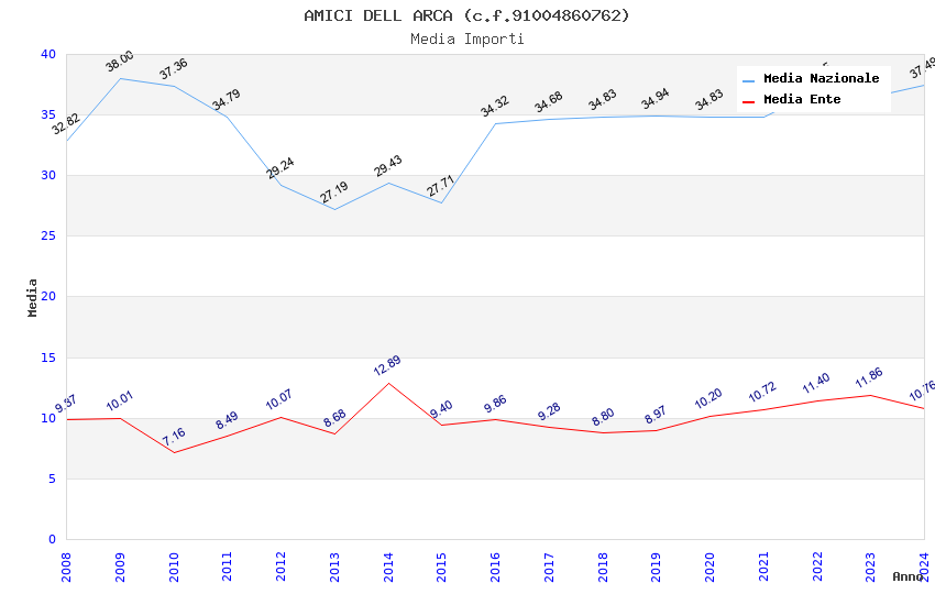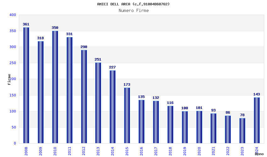 | Anno | Firme | Importi | Media | Naz. | Reg. | Prov. | Comu. |