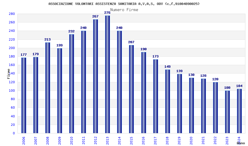 | 2024 | 104 | 2.602,70 | 25,03 | 19.596 | 1.401 | 61 | 3 |