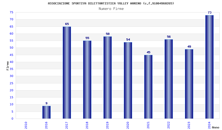 | 2024 | 73 | 2.621,33 | 35,91 | 19.472 | 1.784 | 312 | 3 |